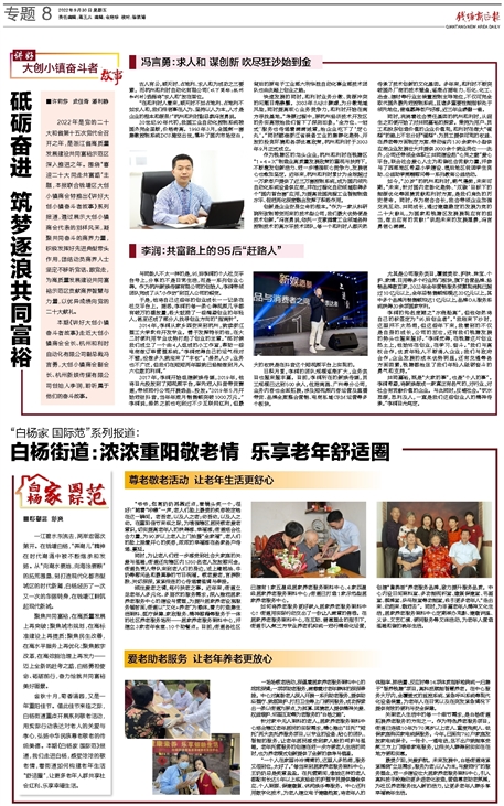 金秋十月,菊香满园,又是一年重阳佳节。值此佳节来临之际,白杨街道重点开展系列敬老活动,用实际行动表达对老人的关爱与孝心,弘扬中华民族尊老敬老的传统美德。本期《白杨家 国际范》报道,我们走进白杨,感受浓浓的敬老情,看街道如何构建老年生活“舒适圈”,让更多老年人群共享社会红利、乐享幸福生活。