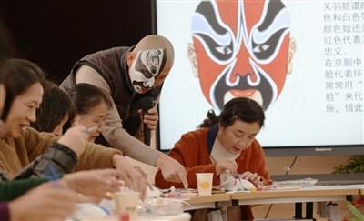 “非遗不应该闭门造车!”在社区各类非遗活动中,也时常能发现王宏斌的身影。他主要负责教授社区内老中青京剧爱好者手绘脸谱。“我希望借此能吸引更多人关注京剧脸谱,让这项创作技艺代代传承下去,重新焕发光彩。”王宏斌说。