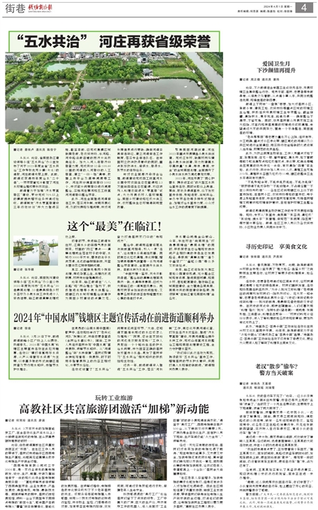 本报讯 近日,省美丽浙江建设领导小组“五水共治”办公室发布了关于2023年度全省“五水共治”工作考核优秀乡镇(街道)的通报,河庄街道光荣上榜。此前,街道还获得市年度治水“二十佳”,一项项荣誉充分彰显了河庄水环境治理成果长效突出。