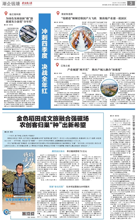 江海之城是钱塘“一带两城”发展战略的重要一极,也是产城人融合的核心承载区。回顾今年前三季度,新城交上了一份沉甸甸的发展成绩单:1-9月,江海之城累计完成外资招引2493万美元;共储备项目104个,总投资181.31亿元;签约亿元级以上项目4个,完成6宗土地出让;“中企国际港”落地,为企业出海打造优质平台,通过重招商、增投资、拓项目,经济建设全面起势。