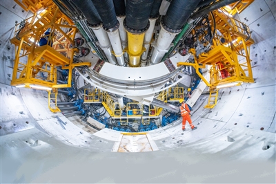 初入职场,勇气成为他最大的倚仗。设备组装期间,面对直径15.08米的盾构机,人在它面前显得很是渺小,难免产生畏惧感。但时开心从小敢做敢说,在师傅的指导下,一口气就能爬到盾构机的顶端,检修各种设备。“当时腿一点儿不抖,现在想来还挺后怕的,其实很容易踩空。”他说。