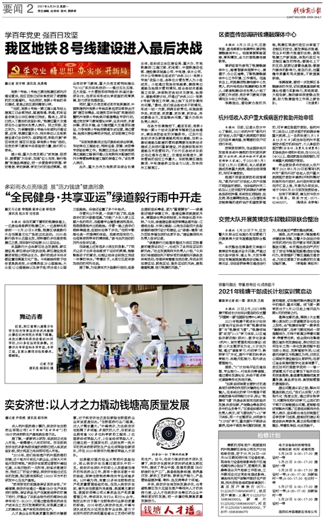 “当前,地铁8号线一期工程9座车站土建施工已全部完成,隧道洞通、轨通,机电设备安装及公共区装修已完成。整体上,项目已进入了最后的攻坚阶段。”钱塘区重大交通项目办公室相关负责人表示。民之所盼,政之所为。为保障地铁8号线今年顺利开通运营,近来,钱塘区重大办、相关单位以及地铁建设者们主动作为、砥砺奋进,积极开展“学百年党史 强百日攻坚 保地铁8号线”活动,在党史学习教育中汲取奋进力量,践行初心使命。