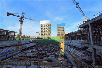 钱塘区文体中心项目正抓紧建设中。目前,1#楼主体结构已完成工程量的95%,2#楼主体结构已完成工程量的100%、砌体工程完成80%,3#楼主体结构已完成工程量的100%、砌体工程完成82%。机电、幕墙安装等预埋施工同期进行。