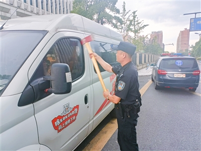 7月7日16点35分,巡特警大队PTU机动队接分局指令:学林街1616号公安分局北门有辆货拉拉,里面有名司机身体不适。到达现场后,民警王云泽拉了下车门,发现车门反锁,透过车窗查看到该男子意识模糊,没有力气解锁车门。在36摄氏度的天气里,小汽车犹如一台高温烤箱,多待一秒就增加一分危险。见状,王云泽立即返回巡车上取来消防斧头,对准车窗角把窗户砸开,顺势将车门打开。民警王云泽与属地金沙湖派出所警力共同将司机抬至车外,之后王云泽单膝下跪掐住该男子的人中部位,不断地向其喊话让其保持清醒,等待救护车救援。救护车赶到后,现场警力共同将昏迷司机抬上车救治。经过救治,该司机已脱离生命危险。