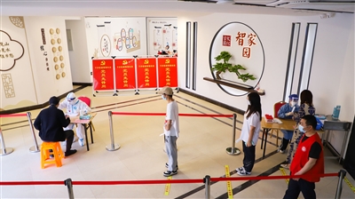 近日,全市正有条不紊开展常态化免费核酸检测工作,钱塘市民全程佩戴口罩自觉有序排队核酸采样。