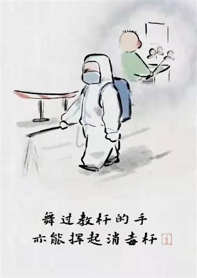 最近,面对严峻的抗疫形势,张国庆联合他所在委员工作站的其他委员,一起拿起画笔将抗疫一线一幕幕暖心的情景通过水墨漫画的形式记录了下来,并精心制成了漫画小册子和其他漫画衍生作品,前后几十次送给忙碌在抗疫一线的工作人员,在传递温暖的同时也表达了心中的谢意。“那些工作在第一线的工作人员实在是太辛苦了,我们希望能够通过赠送抗疫公益漫画的方式为他们的心灵减减压。”当说起这件事时,他的神情忽而变得郑重。张国庆此举在省市各大媒体引起了关注,浙江省政协官方同心苑还专程邀请张国庆委员进行了相关主题创作。