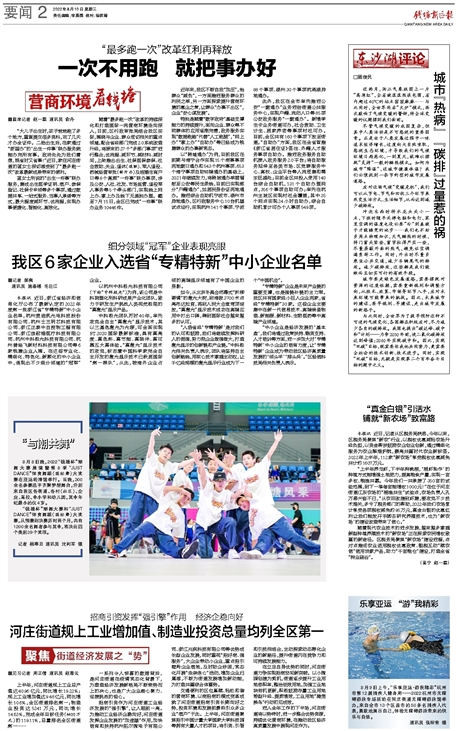 近年来,我区不断自我“加压”,给群众“减负”,一方面推进服务群众的利民之举,另一方面探索提升营商环境的惠企之策,让群众“办事不出区”,企业“安心谋发展”。