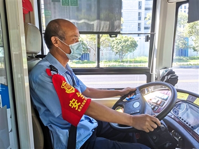等车厢内温度慢慢降下来,蔡国方启动车辆,开始了一天的工作。由于疫情影响,在线路行驶过程中,每到一站,蔡国方都会叮嘱一句:“各位乘客,请戴好口罩,扫描场所码,出示核酸检测报告。”偶尔碰到不配合的乘客,蔡国方也耐心地劝说,没有丝毫埋怨。话说多了,总会口干舌燥,但为了减少上厕所的频率,中途再渴都要忍着,尽量少喝水。