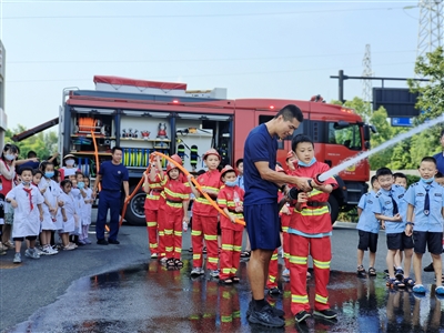 在社卫中心体检科,小朋友们尝试了测量血压,还学会了使用智能体重秤,了解不少健康知识;来到消防站,消防员现场演示了各类消防器材装备,并让小朋友们体验如何使用消防水枪,让小朋友们着实过足了一把“消防瘾”;派出所里,小朋友们对塑料仿真枪“如痴如醉”。