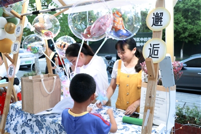 “共富市集”在“贩卖”人间烟火气的同时,这种新鲜的形式也深受群众喜欢。“感觉很久没这么热闹了,听说社区举办了市集,我们过来打个卡。”家住附近的林周告诉记者,自己很喜欢这个市集,晚上带着家人逛逛,在繁忙的工作中,也多了一丝清凉的慰藉。