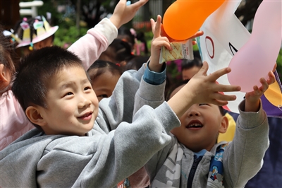 谈到校本理念,禾源幼儿园园长廖晓萍认为,幼儿教育要顺应儿童天性发展的自然历程,遵循儿童身心发展的特点,从儿童生命成长的需要出发,发展生命、完善生命,焕发儿童的生命活力。学校致力于与孩子共同打造一个充满自然野趣、巧思妙趣、丰富童趣、亲和乐趣的儿童“博乐园”,设有小花园、沙水园、果树林、挑战场等游戏场,让孩子们在园内能够释放天性,自由生长,自然成长,给孩子一个朴素、童真、充满意趣的美好童年。“我们幼儿园倡导‘原汁原味’的童年,让孩子回归自然,回归天性。我们根据季节变化开展‘春田花花节’‘缤纷落叶节’,让孩子在玩耍中发现自然、探究自然。”廖晓萍说。