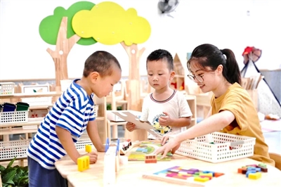 园内主教学楼一层设置了美术馆、保育间、班级区角游戏区等多功能活动空间,二楼设置了科探馆、观光楼梯、多功能厅等多元活动场地,不但满足儿童兴趣发展需要,还可以充分启迪孩子的智力。“当初装修时,就在室内提供足够大的空间供孩子们玩耍。”启明幼儿园园长徐路鑫告诉记者。园内设有多个空间开阔的幼儿活动室,可以满足孩子们室内学习生活。同时,每间教室配备新风机,保证空气清新流通,让孩子在室内玩得无忧无虑。