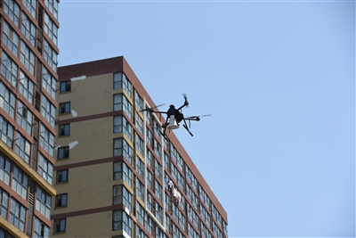 利用无人机所搭载的喇叭开展巡回“喊话”,进行“非接触式”防疫宣传,提醒督促居民配合防疫工作,做好个人卫生防护等事项,给防疫工作带来了很大的便利。“小区住户多,人员密集,很多居民被隔离在家,一时间不知所措,有了无人机这个‘小帮手’,可以实现全方位的疫情防控宣传。”头格社区工作人员表示。