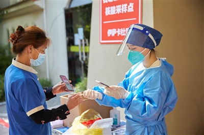 在核酸采样点位上,母子两人一个采样一个扫码,配合得十分默契。“多的时候一天要扫1500多人,妈妈的速度很快,我就紧跟她的节奏。每次都是扫码量最多的点位,我和妈妈现在可是‘最佳拍档’了。”母子俩相视一笑,继续投入到紧张的核酸采样工作中。