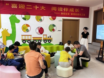 9月24日,新湾街道新宏社区联合街道社工站携手在社区“新·悦读”书房开展“喜迎二十大,阅读伴成长”主题活动。