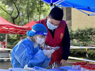 除了提出建议,朱波也身体力行。每天一大早,他都提前到达社区核酸采样点,积极开展扫码登记、维持现场秩序、为居民答疑解惑等工作,帮助居民完成核酸采样。结束后,他还要回到办公室,协助同事核实信息、接听居民电话、准备所需的防疫物资……等他回到家里,往往已经是深夜了。