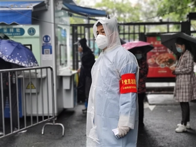 就这样,赵荣伟第14次成为防疫志愿者。维持秩序、安抚居民情绪、发放核酸凭证,他都做得井井有条。