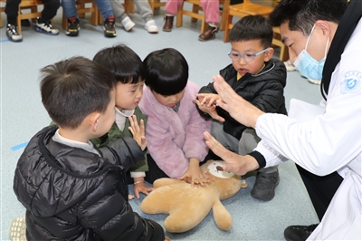 近日,文思幼儿园中一班的小朋友体验了一场别样的家长助教——急救培训课堂。课堂上通过图文、声音、视频、互动体验等多种方式,让孩子们在愉快的氛围中,接受了一次生动的生命教育。在初步体验了自救互救的技能后,本堂课受到了孩子及家长的好评。
