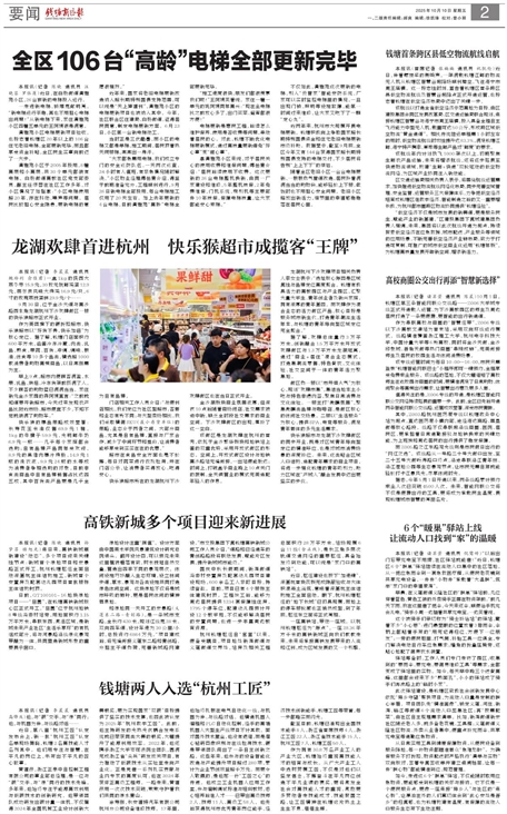 近两年来,杭州市大规模开展电梯更新。钱塘积极向上争取国家超长期特别国债资金和住宅老旧电梯更新市级补助。数据显示,截至9月底,全区今年又有144台获得国家超长期特别国债支持的电梯交付,不少居民将告别“上上下下”的烦恼。