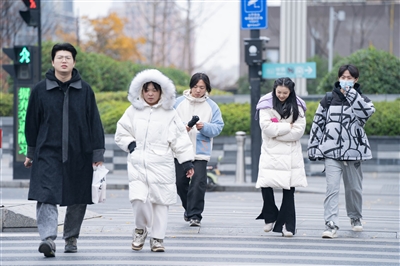 随着气温降低,市民穿上了防寒保暖衣服。记者 朱晟 摄