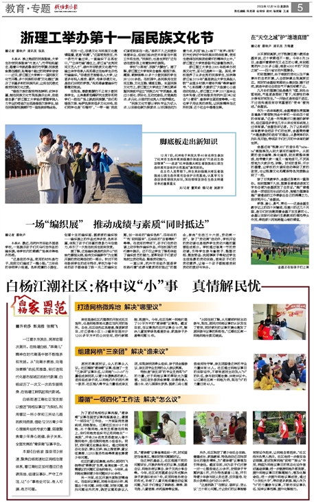 学校“小阵地”、民族“大舞台”。据了解,浙江理工大学有来自畲族、维吾尔族、藏族、朝鲜族等30多个少数民族的学生共1200余名。在校园中,各民族师生空间互融、文化互融、情感互融。本届民族文化节上,浙江理工大学成立了第五期卓越民族班并设立“民族之光”专项基金,通过小班化、项目化、互动式途径,打造高起点、多元化、分层次的优秀人才培养模式。
