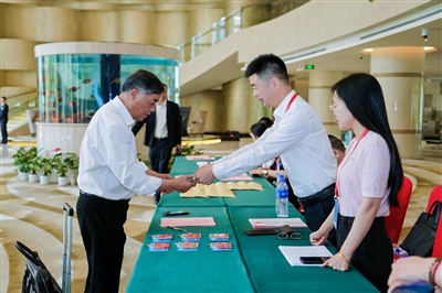 报到现场,代表们在工作人员的指引下有序签字登记,把代表证佩戴到胸前,领取会议相关材料,整个过程简洁高效。完成报到手续后,代表们迅速进入会前状态,研读会议资料,熟悉会议议程,围绕群众关注的热点话题,相互探讨交流。