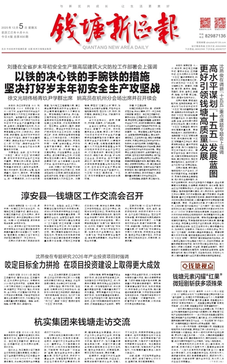 本报讯(记者 董笑瑜)2日,新区党工委副书记、管委会主任,区委副书记、区长沈燕俊召开会议,专题研究2026年产业投资项目。他强调,要深入学习贯彻党的二十届四中全会精神,牢固树立“项目为王”理念,咬定目标、全力拼抢,切实营造大抓项目、抓大项目的浓厚氛围,不断在项目投资建设上取得更大成效,为钱塘经济社会高质量发展夯基蓄能。陶峰、徐进、施峰、马于惠、李俊、胡潜参加。