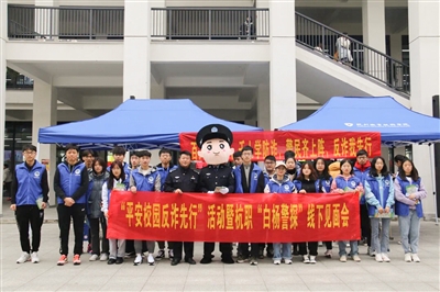 联席会议的成员除了有公安、高校,还有消防、城管、交警等部门,相关部门会定期在群内通报各高校校园安全情况,高校负责人也会对近段时间校内的情况及困难进行说明,多方协同,共商共议,促进校园平安建设。近期布置的枫桥式平安校园建设也是白杨派出所在学习枫桥派出所做法的基础上,结合我区高校实际情况所制定的一套方案。计划在各个高校内设立校园110队伍和实体化运作的校园110警务站,通过警务站整合公安、消防、城管等资源,争取矛盾不上交、纠纷不出校,服务在校办,平安大家建。“这样一方面减少了无效出警,节省警力资源,另一方面,警务站也可以帮助我们进一步做好校园反诈的推广宣传。”沈建平介绍到。