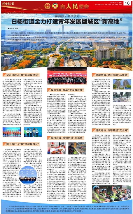 风催春来,万物焕新。展望2024,白杨街道将赓续前行、奋楫争先,立足青年集聚的城区特质,充分发挥高校、平台叠加优势,奋力建设青年发展型城区,助力城市与青年共赴高质量发展,持续擦亮“美好白杨家”靓丽名片。
