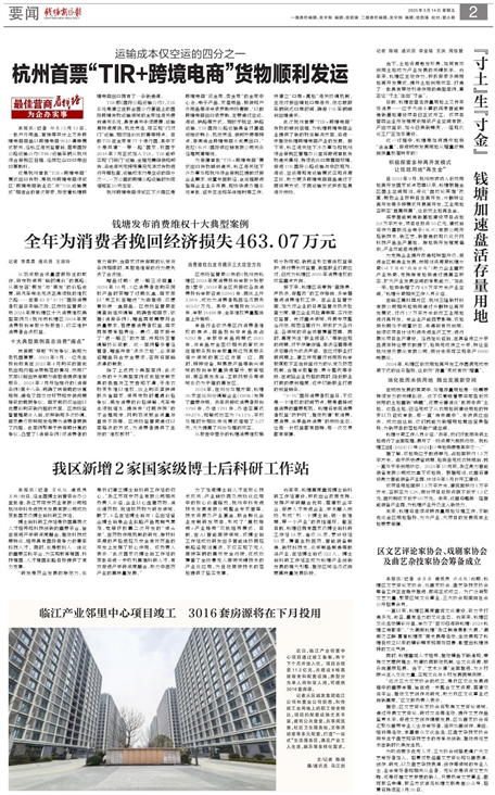 此次杭州首票“TIR+跨境电商”货物的顺利启程,为钱塘跨境电商企业提供了新的物流解决方案,将进一步推动钱塘跨境电商产业的发展。接下来,钱江海关驻下沙办事处和杭州综合保税区管理办公室将跟进首批货物通关情况,持续优化口岸营商环境,促进TIR国际公路运输与中欧班列、海运、空运等现有运输模式实现资源互补,助力更多跨境电商商品通过不同贸易方式、不同运输方式积极拓展海外市场。