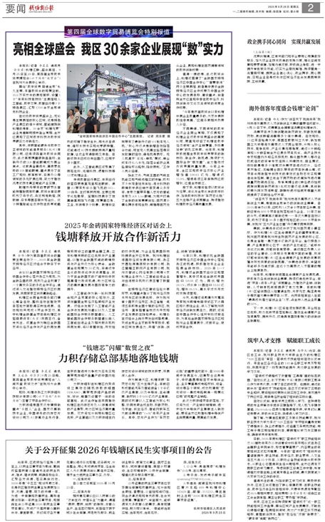 在特殊经济区建设经验分享环节,钱塘重点推介了杭州经济技术开发区的发展优势。作为杭州首个国家级经开区、浙江省唯一连续五年跻身全国十强的经开区,杭经开一直承担着省市对外开放和产业发展的主阵地使命。钱塘也在对话会上向外界发出诚挚邀请,欢迎全球企业家前来考察投资,感受区域发展活力,共谱“创新、创业、创造”的新篇章。